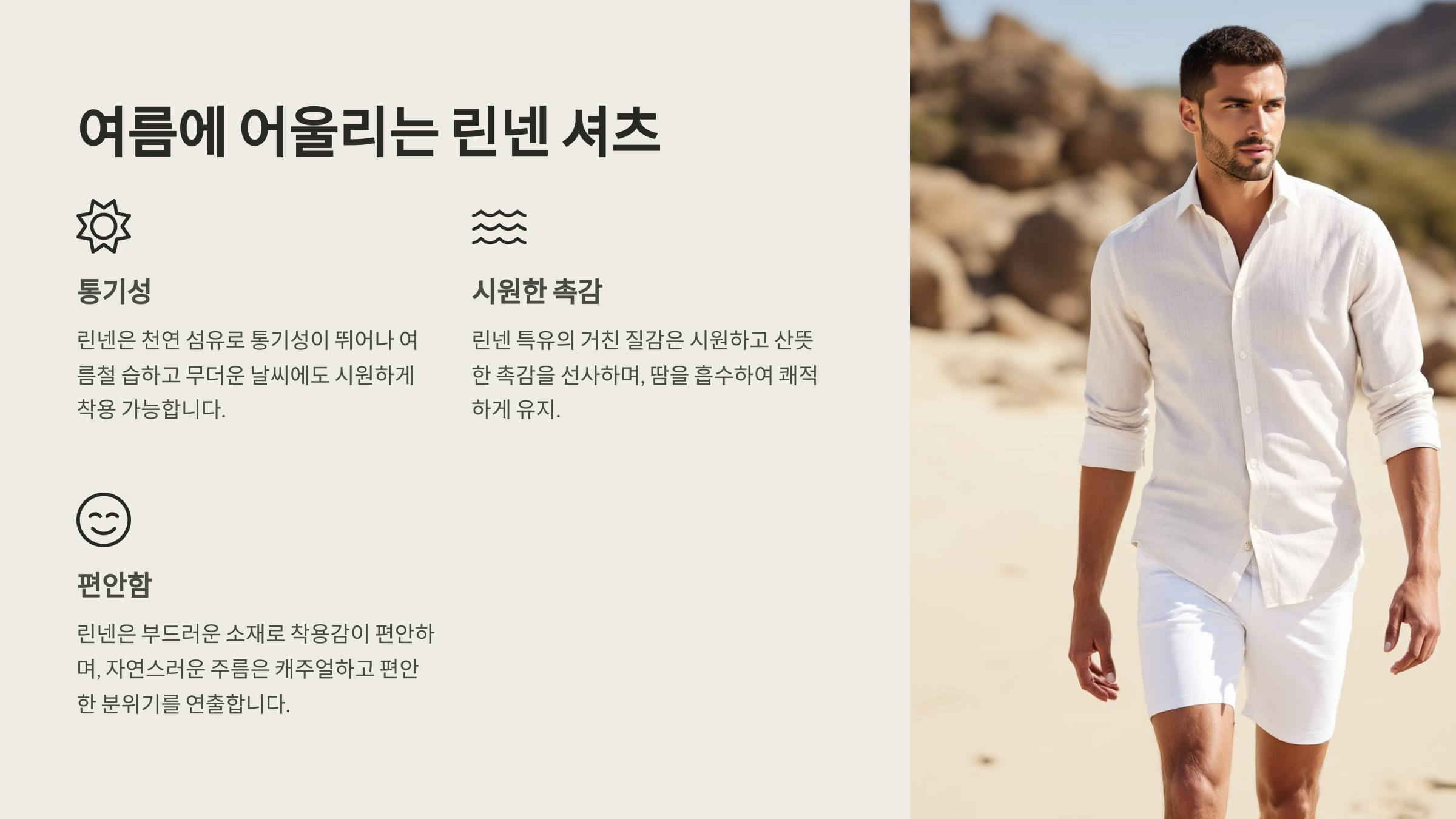 다만, 린넨 소재는 주름이 잘 생기는 단점이 있어요. 이를 활용해 자연스러운 느낌을 살리는 것도 좋지만, 중요한 자리에서는 가볍게 다림질한 후 입으면 깔끔한 인상을 줄 수 있어요.